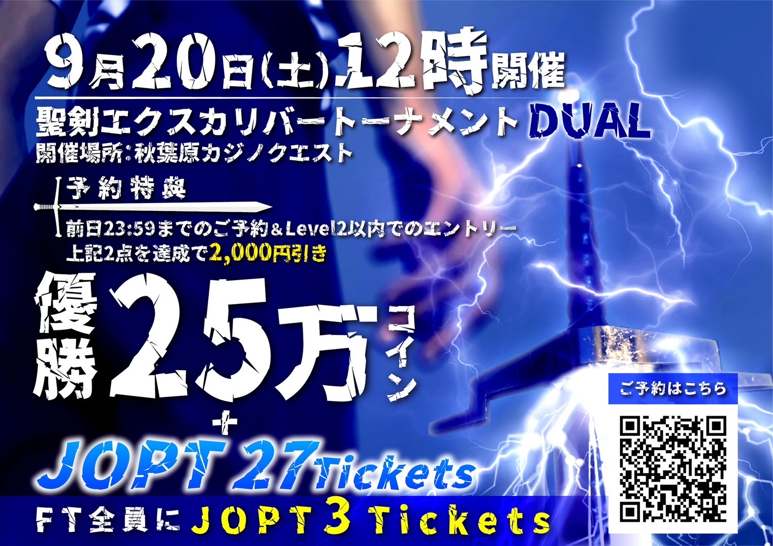 9月20日(土)⚔️【優勝25万コイン+JOPT27tickets】エクスカリバーDUAL⚔️