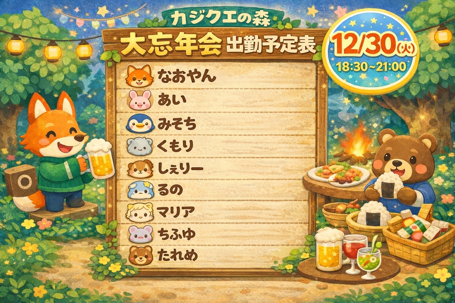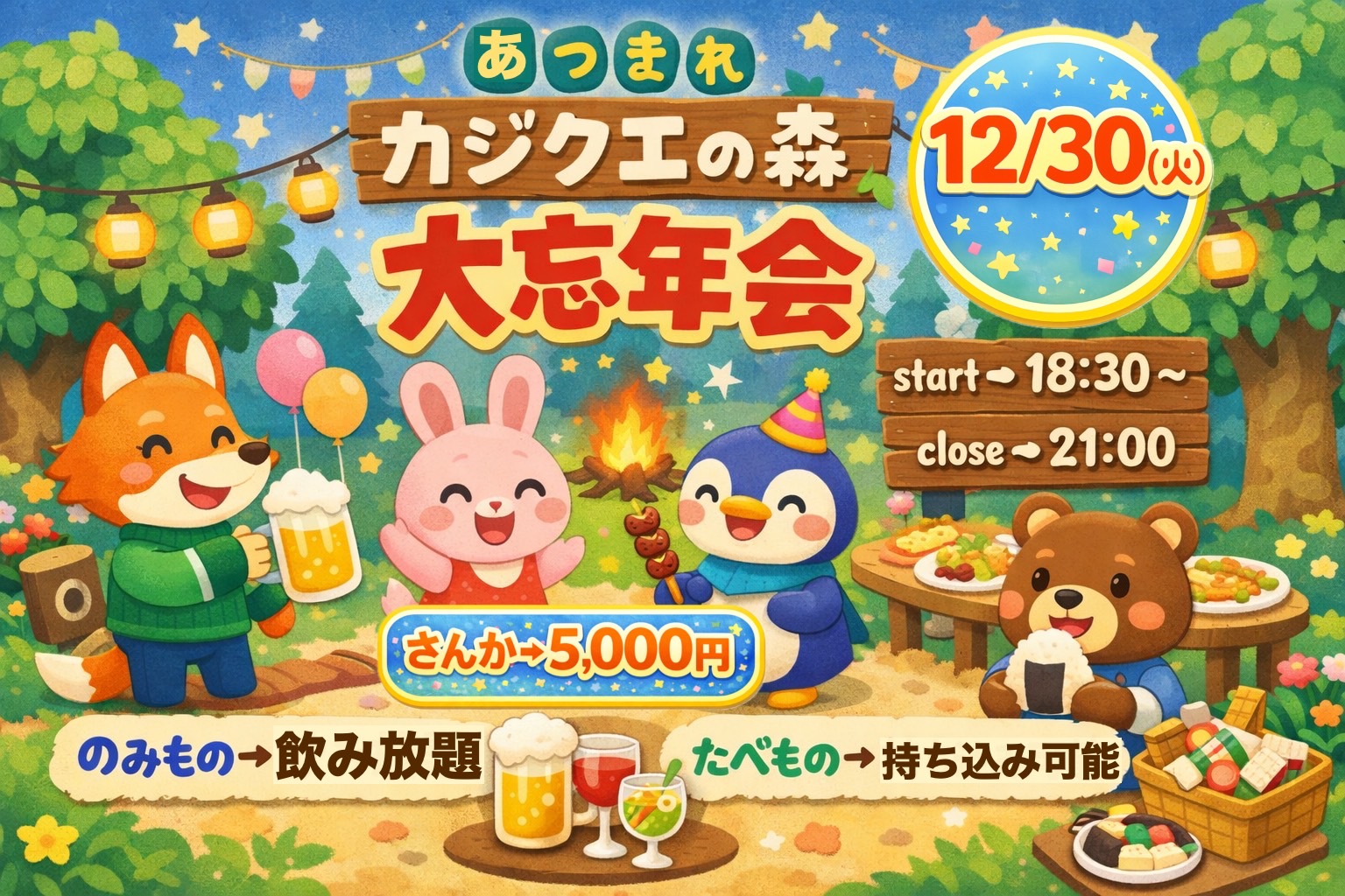 12月30日(火)あつまれ!カジクエの森『大忘年会』🌳🦊
