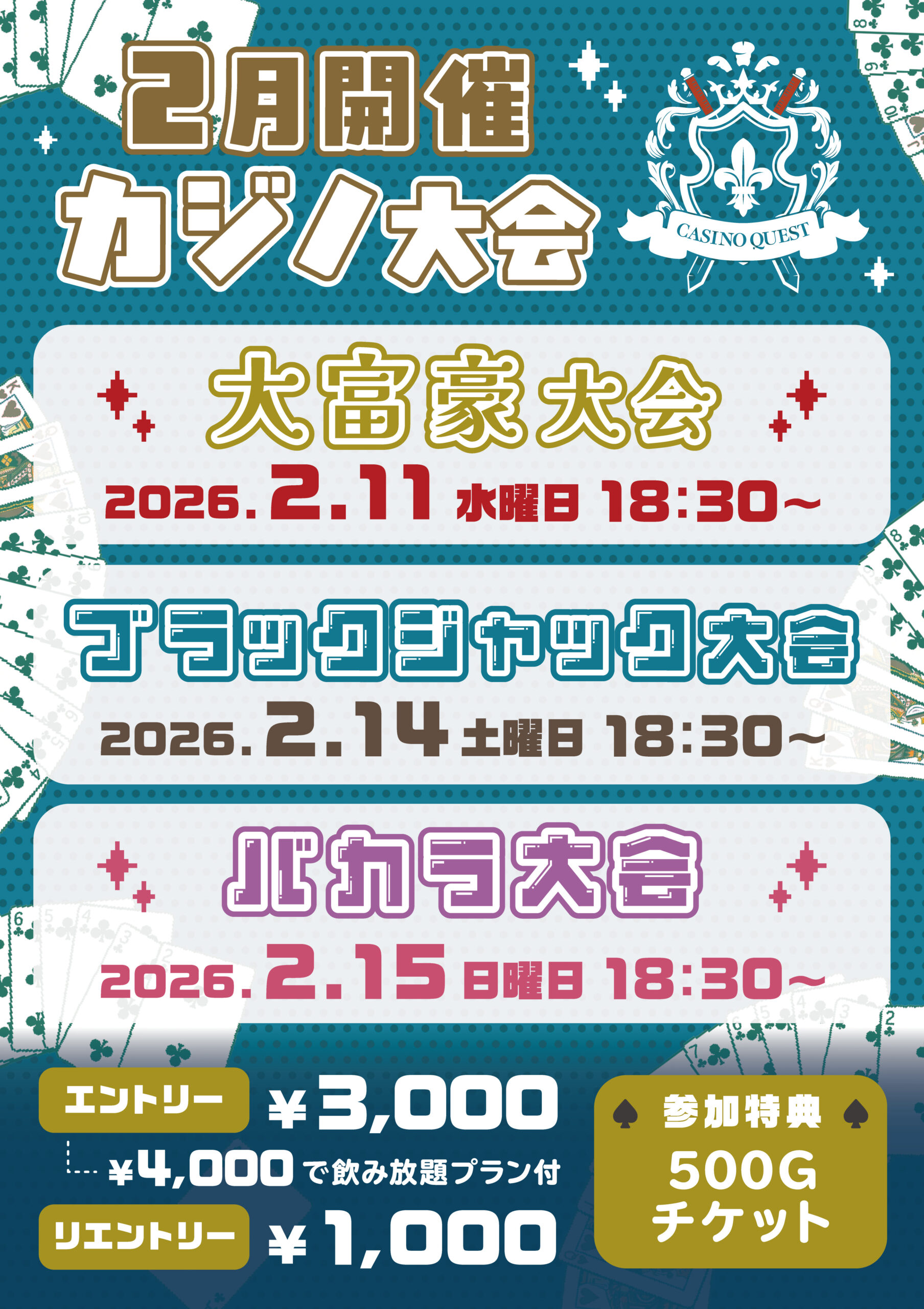2月はカジノ大会を開催します‼️🃏