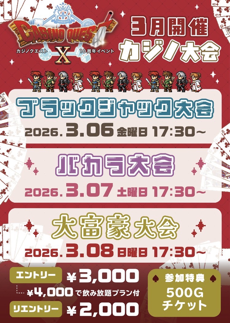 3/6~3/8 カジクエ10周年イベント⚔️カジノ大会開催決定💫